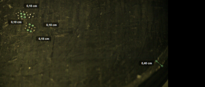23 mars : Mesure de la taille des gouttes créées, on s’aperçoit que pour les gouttes d'une taille supérieur à $1,05$ $mm$ nous n'avons que les régimes simple et intermédiaire, ce qui est notre cas. Difficultés lors de leurs créations de choisir la taille des gouttes, et de pointer sur Kinovéa les gouttes d'une taille inférieur à $1$ $mm$.