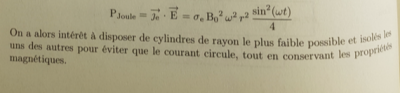 On fait un petit calcul pour se rendre compte que pour limiter les pertes d'énergies par courant de Foucault et pour conserver les propriétés magnétiques, il est préférable de séparer le noyau en plusieurs cylindres pour éviter des trop grandes pertes par effet joule (Pertes en r2 dans la formule).