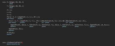 Le résultat est indigeste mais il correspond à ce que j'attends de lui, il me reste qu'à modifier deux petits trucs là-dedans pour qu'à la place de mettre X[i] et Y[j] dans le Z2, il me mette la valeur de l'intégrale en ce point et sinon 0.