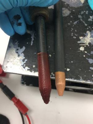 Comme vous pouvez le voir l'un des objet a subis un dépôt plus important que l'autre. Ceci est du a l'intensité du courant celui de droite était d'environ 8 Ampère et l'autre d'environ 5 Ampère.