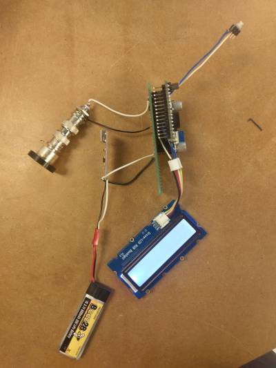 On a fini les soudures en prenant une simple plaque à souder avec des fils, et en optimisant l'espace on a réussi à tout empiler pour que le bloc soit le plus compact possible. Par exemple, la photodiode se trouve au dessus de la carte PCB, qui contient une batterie, un convertisseur de tension (3.7V qui correspond au voltage de la batterie à 5V pour l'arduino) connecté à un module de charge de batterie. Sous ce module de conversion de tension se trouve un ampli op qui permet d'amplifier le signal analogique de la photodiode.