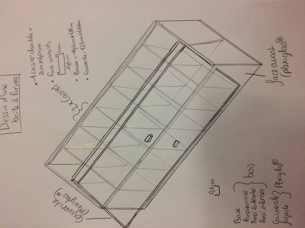 Cette étagère sert de support aux tiroirs qui ont pour but d’accueillir les individus. Ces tiroirs sont fait en plaques de polystyrène dur. Il ne s'agit pas là de polystyrène expansé les larves ne sont donc pas capable de le consommer. Il est également possible de les faire avec du PMMA.