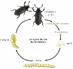 Il est possible de partir d'adultes ou de larves ; les larves peuvent se trouver dans des animaleries sous le nom de “Vers de Farine - Tenebrio molitor”.
