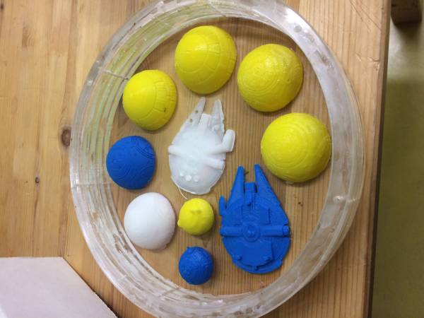 Un nouvel essai d'impression a été lancé avec des modèles donc les formes sont plus simples et plus aptes au démoulage :
