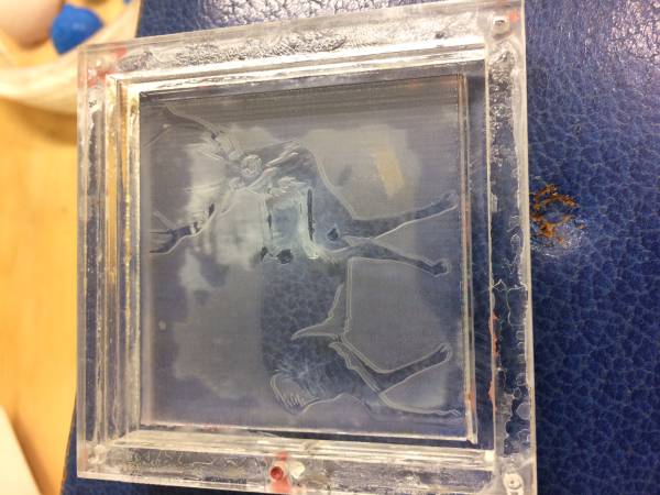 Premier coulage du moule, et mise sous vide pendant quelques minutes. Proportion 9:1 de Silicone:Catalyseur.