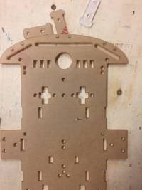Ensuite, on imprimé la partie du haut du robot à partir de la forme du châssis avec la découpeuse LASER. Ceci pour la fixer à la fin.
