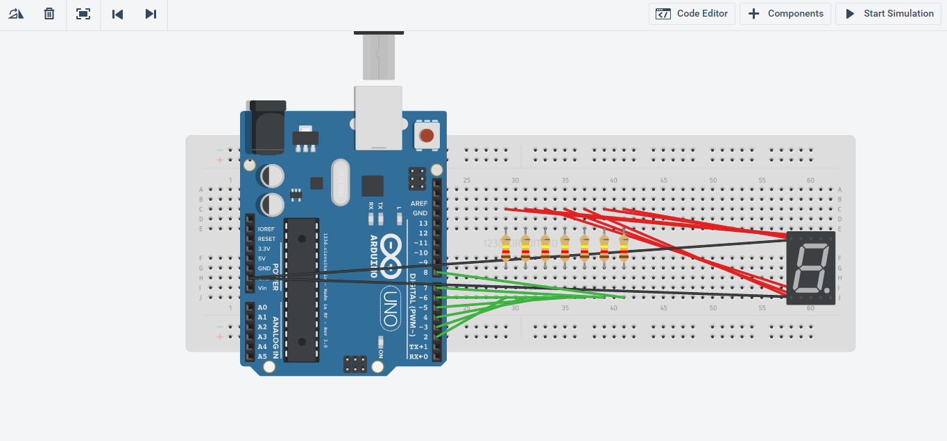 • Tests de branchement en utilisant le logiciel 123D Circuits pour se familiariser à l'utilisation du 7-segment