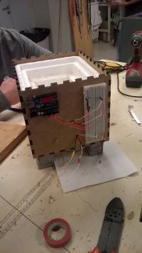 Choix important : l'enceinte sera faite et entourée d'une importante épaisseur de polystyrène, le tout dans une boite en bois réaliser à la découpeuse laser.