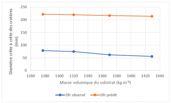 masse volumique du substrat augmente, moins le diamètre crête à crête du cratère est important.