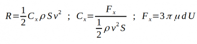 avec μ la viscosité dynamique de l’air (18.10⁻⁶m².s⁻¹ ), d le diamètre de la sphère (30. 10⁻³ m) et U la vitesse de la bille (en m.s⁻¹)