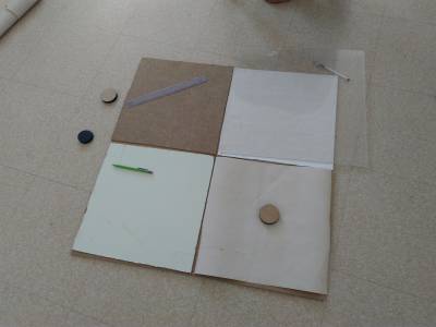 - Du bois peint - Du plexiglas PMMA - Une plaque de bois recouvert de tissus - Du bois non peint
