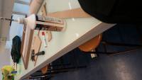 Nous nous sommes ensuite rendus au FabLab afin de commencer à créer notre jeu. Nous avons demandé des conseils quant aux matériaux que nous pourrions utiliser après avoir expliqué notre concept. On nous a conseillé du bois ou du plexiglas, mais nous ne pourrions pas clouer le jean sur du plexigas, et si nous mettions de la colle, le jean ne serait pas assez tendu. Angie et Leo sont donc allés acheter deux planches de bois (30 cm x 60 cm) chez un menuisier afin de commencer à construire le dispositif. Avec une scie nous avons découpé les planches, puis nous les avons limés. Nous avons donc pu obtenir les premières pièces de notre dispositif : la planche qui sépare les deux terrains sur laquelle nous devrons rajouter les arches, ainsi que deux parois de 60 cm de longueur.