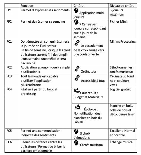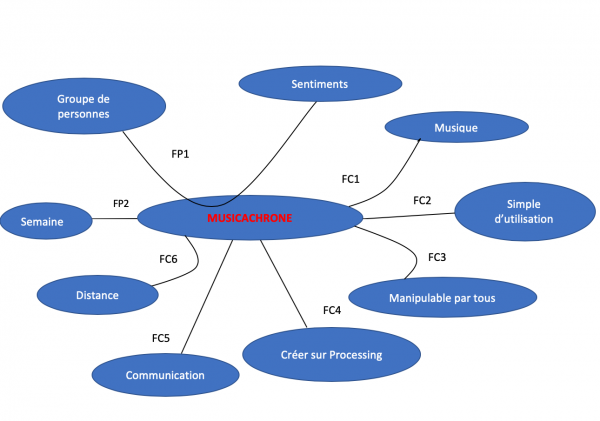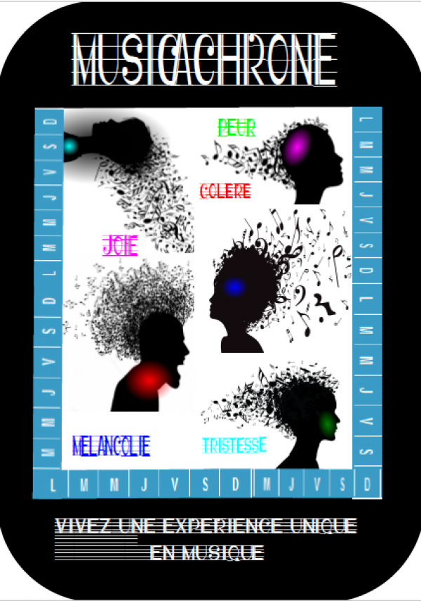 L'application Musicachrone permet aux utilisateurs d'être perçut par autrui à travers des notes de musique. Chaque utilisateurs devra sur l'application d'écrire les sentiments qu'il a ressenti tout au long de la semaine par le billet de la musique. De plus pour chaque jours de la semaine il y aura 3 choix de réponses : “excellente”, “Normale” et “horrible!! ”; toutes les réponses seront liées à une notes de musique. Ensuite lorsque tous les participants auront répondu, une mélodie sera joué et correspondra à la sommes de toutes les notes de musique liées aux sentiments ressenti selon chacun, par rapport à la semaine qu'ils viennent de surmonter.