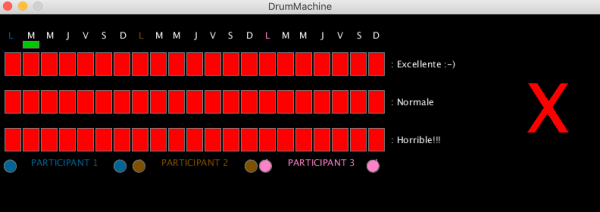 On a ajusté les notes de musique afin créer une différences sonores entre elles. Ensuite on a r'ajouté un grand X rouge qui bascule au vert lorsque tous les participants ont fini de cocher leurs cases.