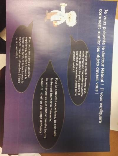 Ce projet consiste a élaborer 3 maquettes différentes. La première serait une représentation du système solaire avec une échelle relativement fidèle. La deuxième serait un système dynamique permettant de montrer le mouvement des planètes autour d'une étoile. On expliquera à travers celle-ci qu'une année est le temps de révolution de la planète autour d'une étoile, et donc qu'une année représente un temps différent d'une planète a une autre. La troisième expérience serait une modélisation de ce qu'est un jour par rapport à la Terre, afin d'expliquer qu'un jour n'est autre qu'une rotation de la terre sur elle même.