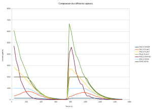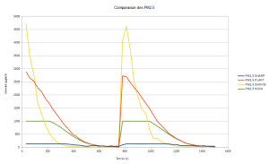 Nous avons lancé un test plus long et plus complet avec 2 injections de fumée dans notre boîte, pour comparer les 4 capteurs selon les types de particules.