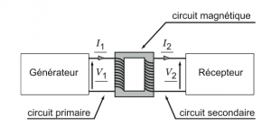 Le polarimètre contenant des composants ne pouvant pas recevoir une forte tension , il faut donc un transformateur. Pour cela, nous prenons l'exemple d'un transformateur dans une recharge :