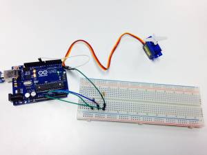 Le matériel le plus simple afin de coordonner des composants, c’est la carte Arduino, permettant de programmer des actions simples à des outils ou de récupérer des informations provenant de capteurs. Dans un premier temps, nous avons donc effectué des tests en essayant de contrôler un servomoteur, choisi pour faire tourner la feuille polarisante. Les résultats furent satisfaisants, la feuille polarisante étant accrochée directement au servomoteur, nous pouvions lui faire effectuer une rotation de 180°, 1 degré par 1 degré, ce qui nous semblait au départ assez précis. Ajoutons à cela que le servomoteur fut choisi pour sa simplicité d’utilisation et de contrôle, contrairement à un moteur pas à pas, nécessitant un protocole plus lourd pour être dirigé. Le servomoteur est également moins cher.