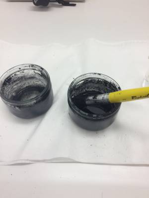 Découverte de la peinture conductrice faite à partir de mine de crayon et de colle de bois, cependant les mine ne sont pas assez fine après écrasement pour faire un bon mélange.