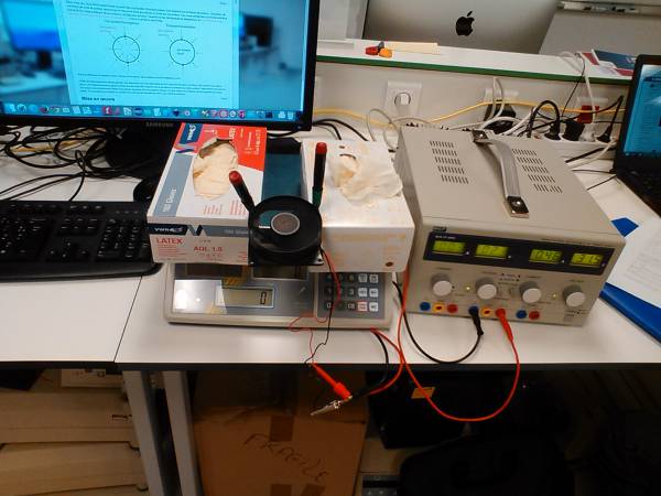 Nous avons mesuré la poussée générée par un ventilateur de refroidissement de PC. Le dispositif permettant cette mesure est assez rudimentaire amis nous avons pu mesurer 11,5 grammes de poussée.