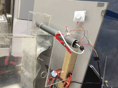 Maintenant que la boite à sable est construite il s'agit de la faire fonctionner. Un des problèmes majeures que l'on a rencontré est la fuite du sable par la fente. Dans un premier temps on insère une barre la plus rigide possible quelques centimètres devant la fente et en dessous: le but ici est de diminuer l'angle d'inclinaison du tapis quand il passe à travers la fente. Une fois cette modification faite, les pertes de sable sont moindres mais toujours conséquentes.