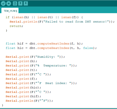 Après avoir installer les bibliothèque on a redémarré IDE Arduino pour trouver nos bibliothèques . Pour lire la température et l'humidité du capteur DHT22 on a utilisé le code suivant :