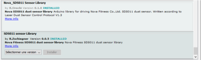 Dans ce cas le capteur porte le nom NOVA PM senser alors on a choisi la première bibliothèque.