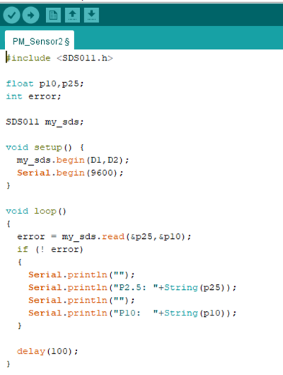 1-Ajouter la bibliothèques adaptée (via outils → Gérer les bibliothèques, puis rechercher une bibliothèque pour le SDS011)