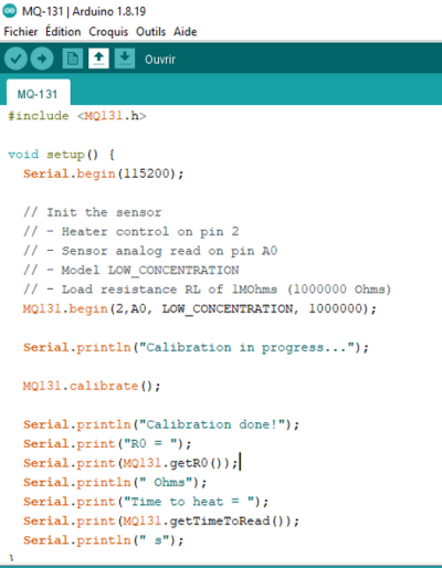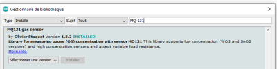 Pour communiquer avec MQ-131 et afficher les mesures nous allons avoir besoin d'une bibliothèque spécifique