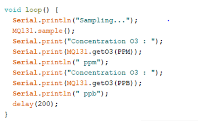 Pour afficher les valeurs de O3 nous avons utilisés le code suivant :