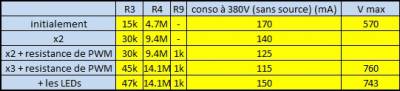 Certes la consommation est diminuée par contre le circuit ne peut délivrer que 490 V. Pour détecter le bon plateau de fonctionnement on a besoin de pouvoir augmenter jusqu'à 550 V donc finalement on a décidé de garder le doubleur.