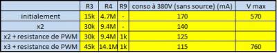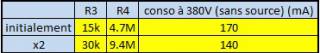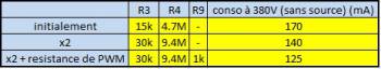 On voit qu'on est arrivé à réduire la consommation effectivement. Donc on a continué à encore augmenter les résistances du diviseur de tension.