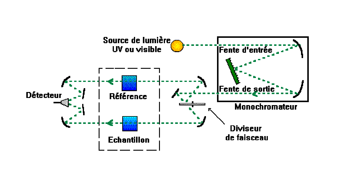 Schéma des composantes du spectrophotomètre (à double faisceaux)