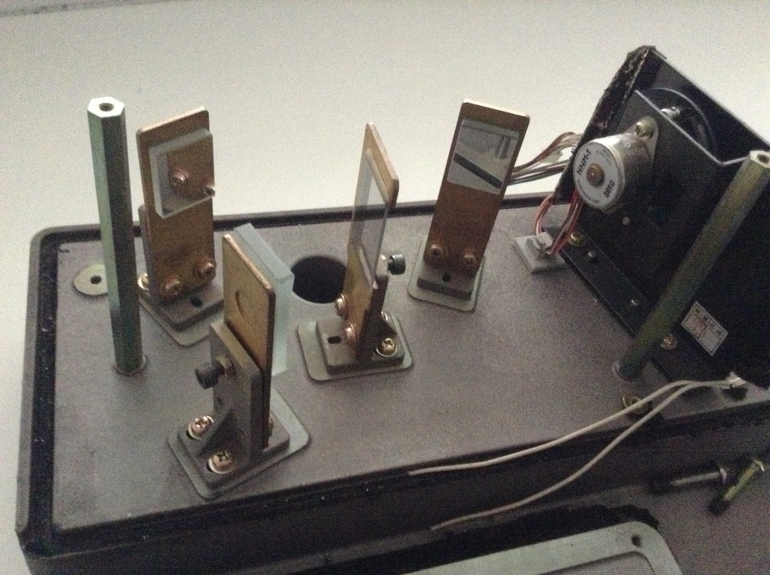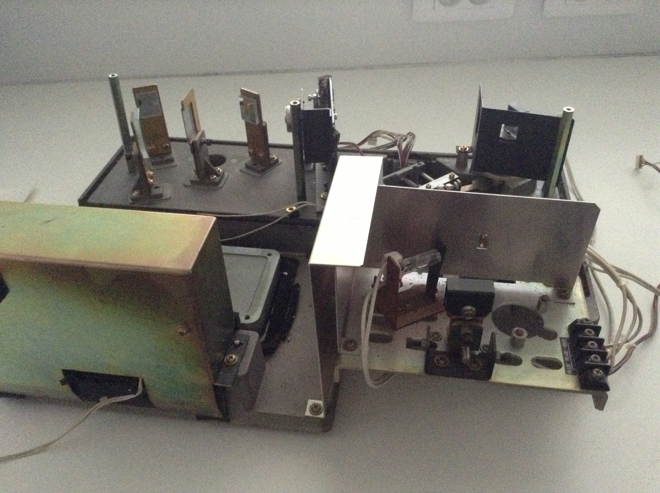 Au cours de la première séance de révision en groupes individuels avec le professeur, nous avons notamment pu observer un ancien spectrophotomètre à double faisceau et précisément les composantes de l’appareil (miroirs, réseau de diffraction, détecteurs, etc.). Nous sommes allés jusqu’à démonter la partie « détecteurs » pour pouvoir observer le circuit électronique qui les relie et prendre des photos.