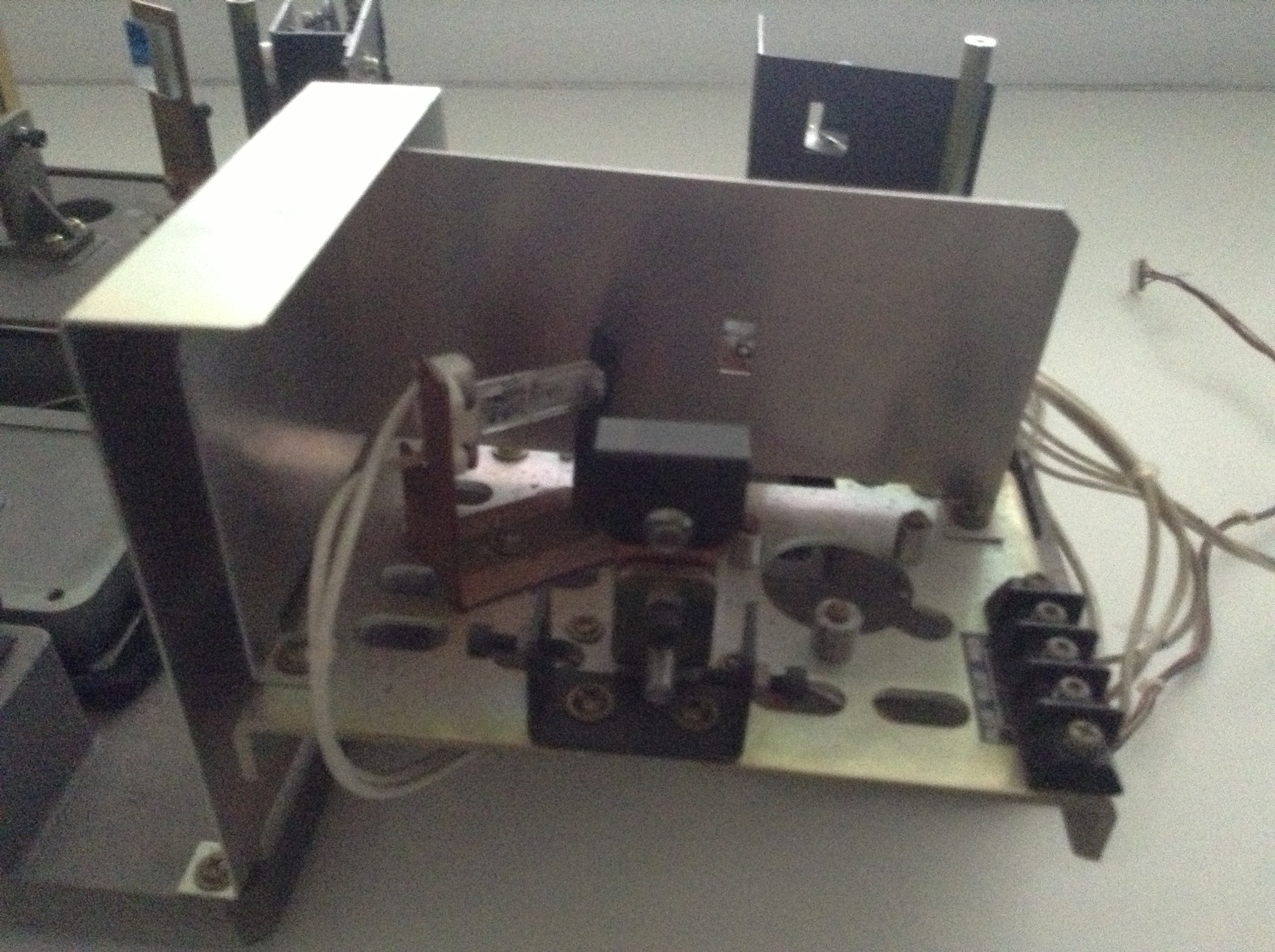 Détecteurs : Composés d'une(de) photodiode(s) qui “réceptionne(nt)” les rayons émergents des cuves et d'un photomultiplicateur qui sert d'amplificateur (à développer). Nous avons vu dans un ancien spectrophotomètre que ces détecteurs sont directement “attachés” au circuit électronique reliant un ordinateur (voir photos plus loin).