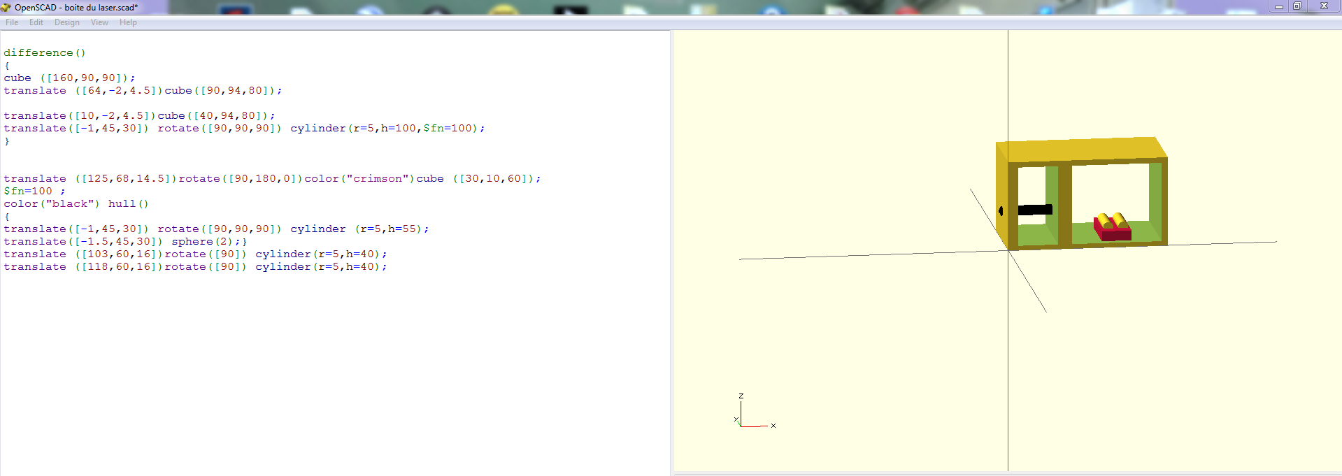 Comme il nous restait un peu de temps, nous avons commencé à imaginer une boîte pour y mettre le laser à l'intérieur.