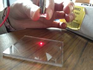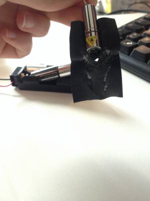 Nous avons ensuite collé le scotch sur le laser, et… Nous obtenons un un faisceau rond.
