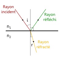 Avec «i» l'angle incident , et «r» l'angle réfracté .