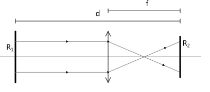 R2 : le rayon du faisceau laser après lentille (~ 3mm)