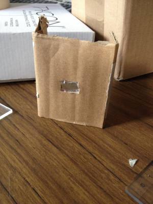 Nous avons alors fabriqué un support en carton sur lequel nous avons découpé un trou d'environ égal à 1.6 * 1,0 cm pour pouvoir y insérer la lentille.