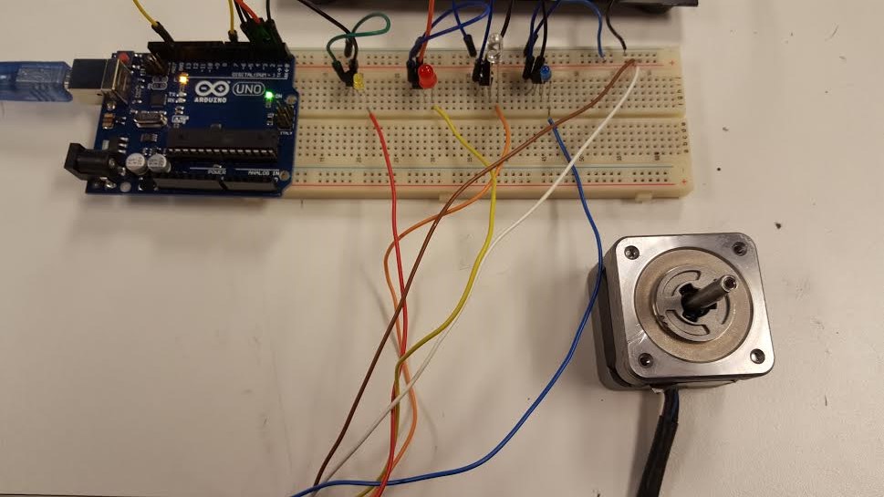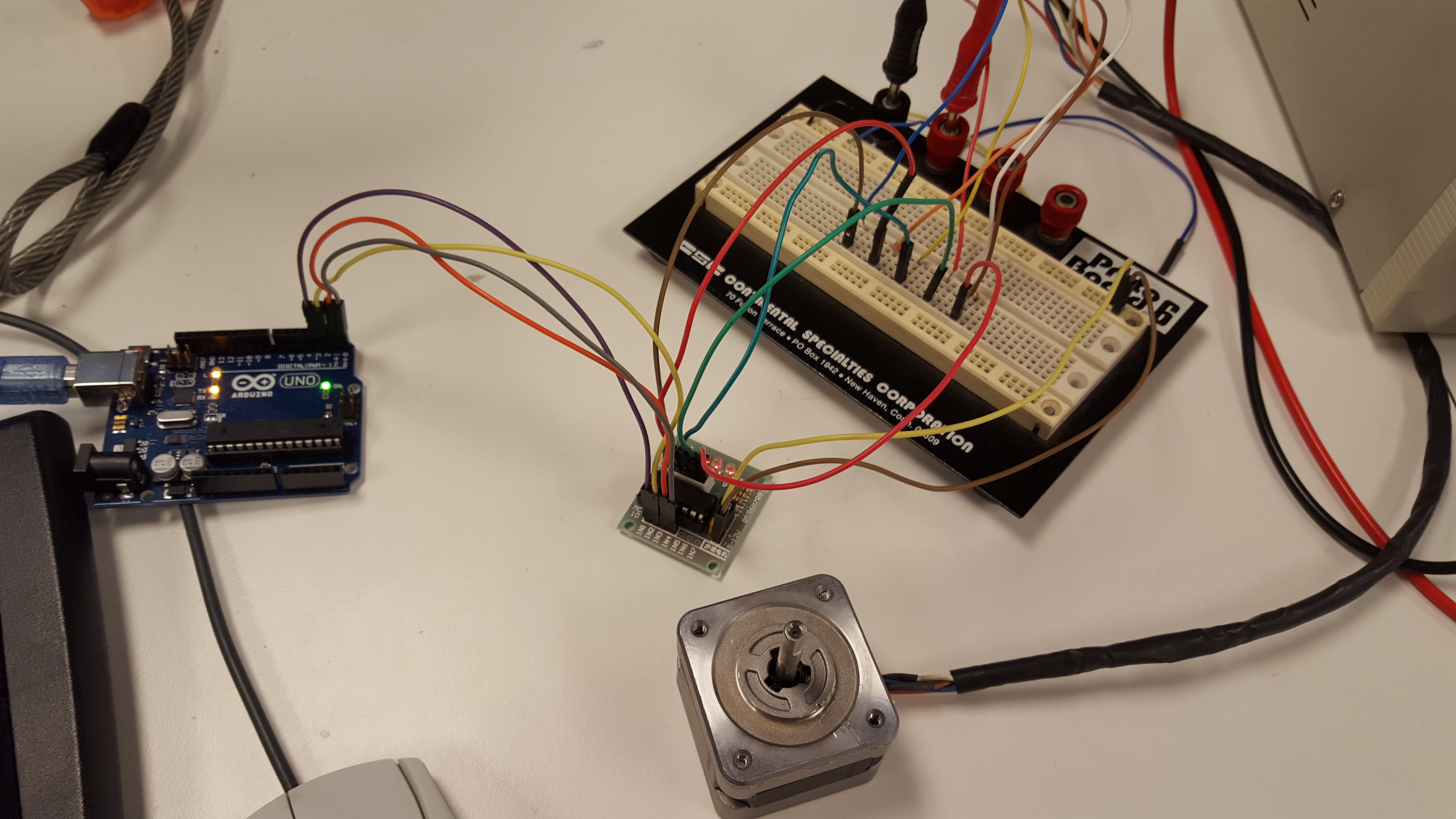 Nous avons essayé de piloter le moteur grace à 4 transistors activés par une arduino uno. Le test n'a pas fonctionné, l'axe du moteur bougeait, mais nous n'avons pas réussi à obtenir une rotation.