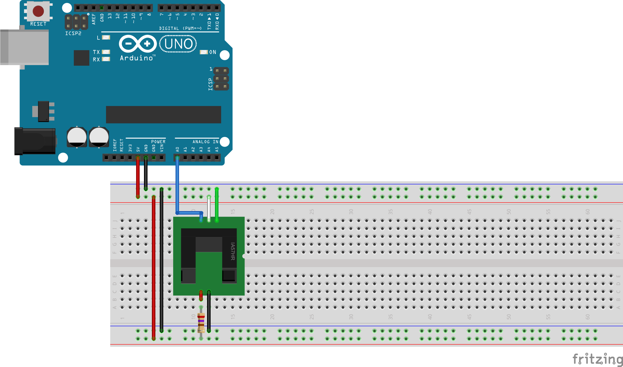 Le capteur fonctionne parfaitement, le fil bleu renvoie 0 Volts lorsque rien n'est entre les 2 bras du capteur et renvoie une tension lorsque le capteur détecte un objet.