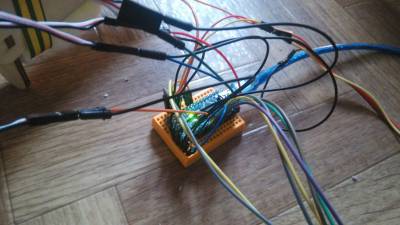 Nous avons ensuite connecté l'IMU sur le port SPI de l'Arduino (pin A4 et A5 vers SDA/SCL sur l'IMU) puis sur +5V et GND. Puis connecté les ESC sur le GND et sur les pins 3, 10, 9 et 11 (en partant du moteur avant gauche et en tournant dans le sens des aiguilles d'une montre)