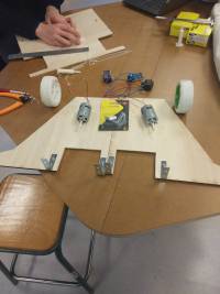 04/12 : On a passé l'après-midi pour faire la carrosserie du robot. Pour ce faire, nous avons utilisé les planches de bois qui nous restaient puis nous les avons scié et percé. pour les fixer, nous avons utilisé des vis-écrous, il ne nous reste plus qu'à fixer notre drapeau et régler les derniers détails au niveau électronique, puis nous serons fin prêt pour la compétition.