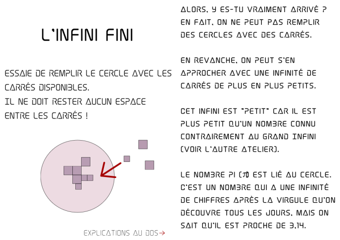 Voici les différents ateliers que nous avons pu trouver, concernant la notion d’infini :