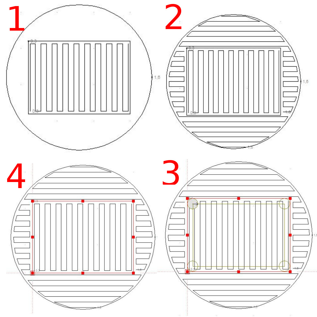 Ici, on voudrais hachurer un carré avec un profondeur du 2mm. Puis hachurer un circle avec un profondeur du 1mm. Apres, on découpera la circle.