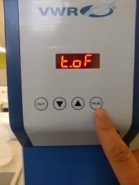 L’écran affiche par alternance le paramètre et sa valeur, changer la valeur du paramètre avec les flèches, changer de paramètre et valider le changement de valeur en appuyant de nouveau sur FKT 3 paramètres : Set Point (SP) de 0 à 70°C, Timer Unit (t.Un) minutes ou heures, Timer Initial Value (t.st) de 0 à 999 min ou de 0.0 à 99.9 hr , t.of signifie que le timer n’est pas actif.